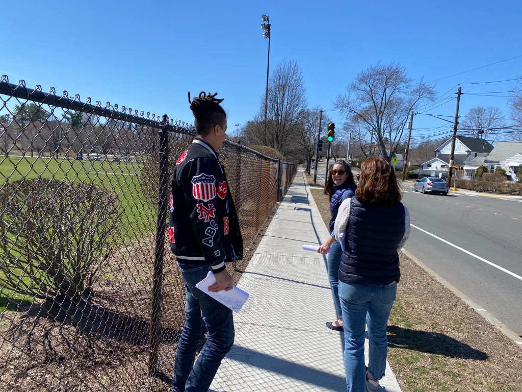 Newton Director of Parks and Open Space Luis Perez Demorizi giving a walking tour to FoA Board Members Jacqueline Freeman and Megan Anapolle – and making us all very happy to hear that the chainlink fence would be replaced with naturalized plantings.
