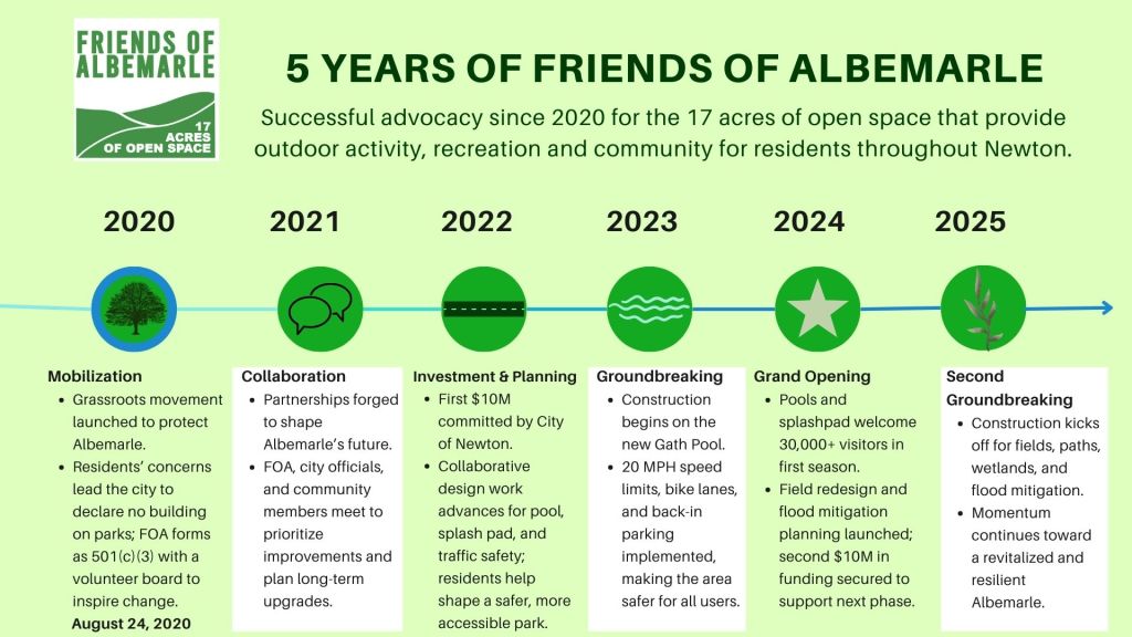Can you believe it’s been FIVE YEARS since Friends of Albemarle was founded by a small, committed group of volunteer residents and park users who wanted to ensure the accessibility and sustainable use of this incredible open space resource?