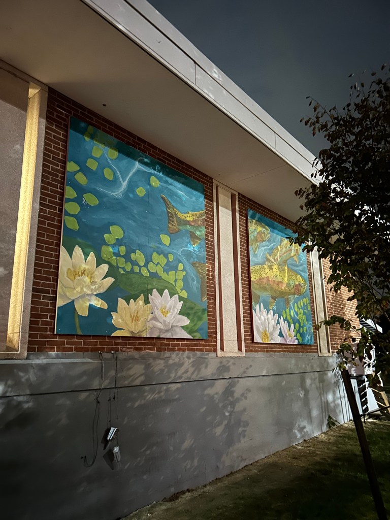I walked down to the pool the night it was installed and, yes, soaked it in. These are rainbow trout, busy connecting us to the tributary of the Charles River at our backs and the experience of swimming ahead of us – ensuring we are one with our ecosystem, each other, and ourselves.