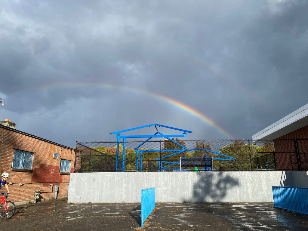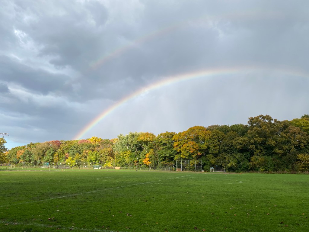 Athletes out on the field; friends on a walk through Avery Woods; kids running through the playground; all under the bright blue skies and drifting leaves of Albemarle. And even, if you’re willing to get drenched, a double rainbow (oh yes, read on for pictures).